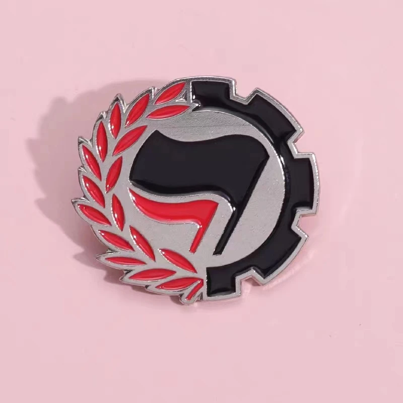 Pin esmaltado antifascista com design clássico em preto e vermelho. Um símbolo de resistência, memória e compromisso com a democracia. Ideal para jaquetas, mochilas e uso diário.